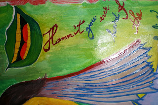 Tot ea desenează pe ce apucă, are un fel de penar cul cu tot felul de chestii cul în el, printre care şi un stilou de care are o grijă exagerată. Mai are şi alte lucruri, dar puteţi trăi liniştiţi în continuare, fără să aflaţi chiar tot.